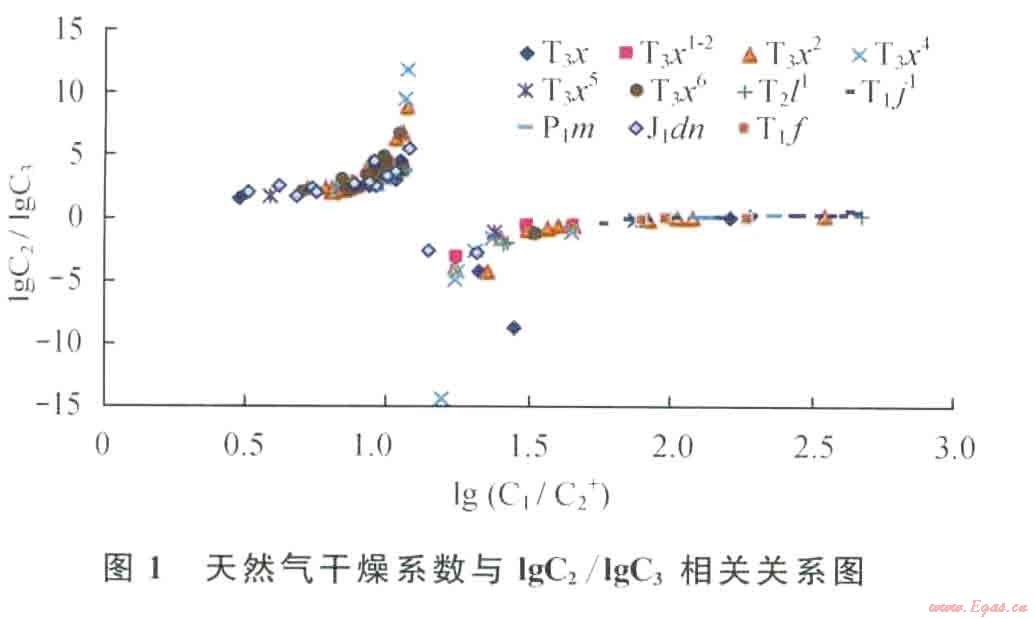 從天然氣的干燥系數(shù)與重?zé)N關(guān)系圖上看(圖1),上三疊統(tǒng)的天然氣干燥系數(shù)相對較低、重?zé)N含量相對較高,具有低熟自源氣的特征。部分上三疊統(tǒng)氣井的天然氣展示出干燥系數(shù)較高、重?zé)N比值較低的特征,與下伏層系產(chǎn)出的天然氣混為一體,表明這些氣藏(井)有深部氣源混入。