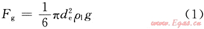 橢球體液滴韋伯?dāng)?shù)的臨界值為20~30。當(dāng)氣體流速大到足以使韋伯?dāng)?shù)達到臨界值時,速度壓力起主要作用,液滴就容易破壞。取韋伯?dāng)?shù)為Nwe=30回代到式(7),解出最大液滴的直徑(de),即