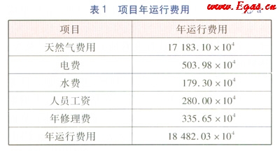 天然氣是一種清潔、優(yōu)質(zhì)、使用方便的能源。與燃煤鍋爐房相比,燃?xì)忮仩t房可省去脫硫、除塵、上煤、除渣等設(shè)備,無需煤、渣堆場,節(jié)省用地,運行管理較簡單。該項目供熱面積為612×104m2,鍋爐熱效率取0.95,天然氣的低熱值為35.16MJ/m3,天然氣額定耗量為36400m3/h。天然氣價格按1.65元/m3計算,電價按0.59元/(kW·h)計算,水價按5.5元/t計算,人員工資按4×104元(人·a)計算,年維修費按設(shè)備造價的1.8%計算。項目年運行費用見表1。由表1可知,項目的年運行費用為18482.03×104元/a。項目造價為25140.38×104元,使用壽命為20a,年收益率為5%。采用費用年值法對項目進(jìn)行經(jīng)濟(jì)性分析,費用年值F的計算式為: