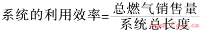 大量的國內(nèi)外資料表明,城市管網(wǎng)管線長度與銷售量有明顯的線性關系,國際上常以總銷量(106m3)與系統(tǒng)總長度(km)的比值表示——燃氣輸配系統(tǒng)的利用效率[1]: