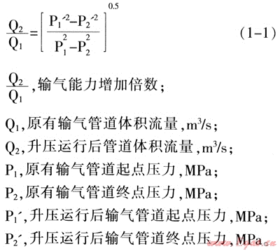 ,假設升壓前后其它參數(shù)均不變,則輸氣能力的倍數(shù)關系為: