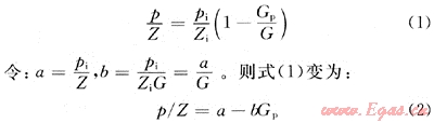 由此可知,對(duì)于定容封閉氣藏,視地層壓力(p/Z)與累計(jì)采氣量(Gp)為直線關(guān)系。因此,根據(jù)不同階段視地層壓力與相應(yīng)累計(jì)采氣量的回歸直線可求得氣井可動(dòng)儲(chǔ)量: