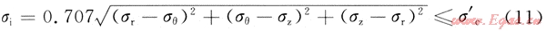 根據(jù)Von-Mises屈服強(qiáng)度準(zhǔn)則,判斷是否滿足下式。如果全部滿足則為安全狀態(tài),否則處于危險(xiǎn)狀[10]。
