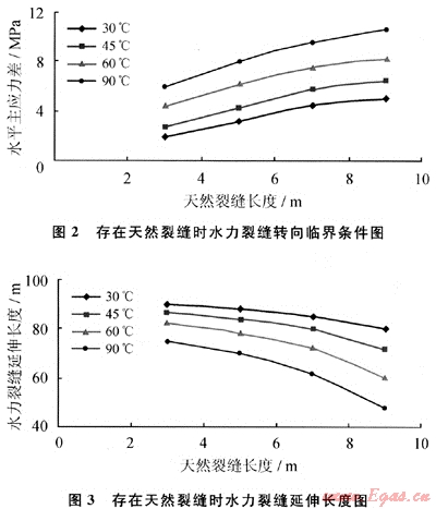 2) 當(dāng)天然裂縫的數(shù)量、天然裂縫與最大水平主應(yīng)力方向的夾角以及天然裂縫的長(zhǎng)度增加時(shí),水力裂縫發(fā)生迂曲轉(zhuǎn)向所需的水平主應(yīng)力差也增加,但增加幅度逐漸變?。凰α芽p的延伸長(zhǎng)度逐漸減小,但減小幅度逐漸變大。主要原因是壓裂液由主裂縫進(jìn)入天然裂縫后,縫內(nèi)的摩阻逐漸增加,而且主裂縫在迂曲轉(zhuǎn)向過(guò)程中,彎曲摩阻也持續(xù)增大。