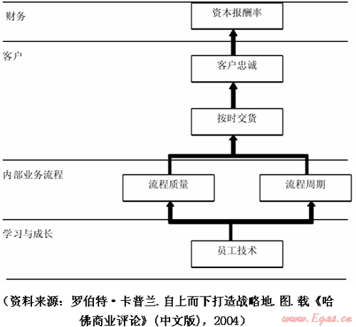 當(dāng)企業(yè)樹(shù)立了的長(zhǎng)遠(yuǎn)發(fā)展目標(biāo)之后, 戰(zhàn)略的作用就是為解決“如何才能達(dá)到這個(gè)目標(biāo)”的問(wèn)題提供思路。平衡計(jì)分卡的成功之處就是將企業(yè)戰(zhàn)略置于管理的中心, 所以企業(yè)要應(yīng)用平衡計(jì)分卡, 須以戰(zhàn)略作為企業(yè)的導(dǎo)向。