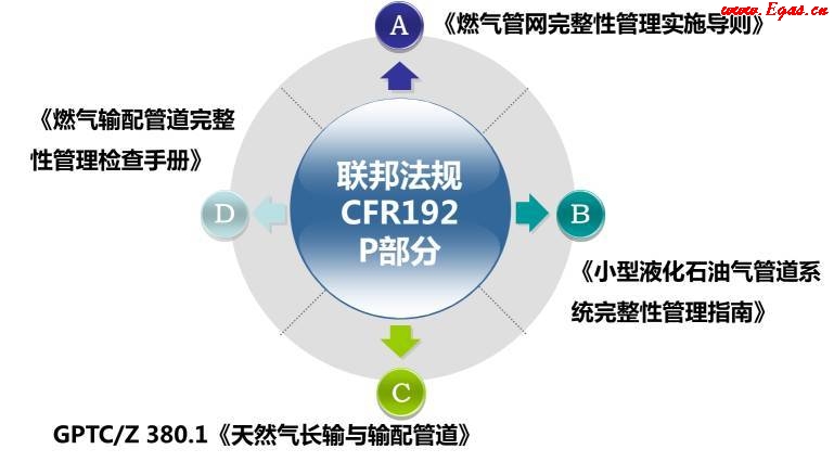 CFR第192章是管道輸送氣體聯(lián)邦安全標準,對長輸和輸配管道系統(tǒng)安全運行作出了規(guī)定,其中P小節(jié)《SubpartP—GasDistributionPipelineIntegrityManagement》提出燃氣輸配管道完整性管理的要求,是美國燃氣運營企業(yè)開展完整性管理的綱領性文件。法規(guī)明確要求所有的城市燃氣運營企業(yè)應當在2011年8月2日開始制定和實施管道完整性管理方案,并提出了燃氣輸配管道系統(tǒng)(包含液化石油氣系統(tǒng))開展完整性管理的最低要求。