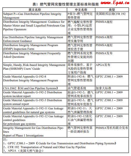 ANSI/GPTCZ380.1《天然氣長輸與輸配管道》標準由GPTC制定,主要是針對天然氣管道的輸送和輸配的規(guī)定,附錄中G-192-8章節(jié)為《燃氣輸配管道完整性管理指南》,按照聯(lián)邦法規(guī)規(guī)定的七個要素展開,敘述了燃氣輸配管道開展完整性管理的內容,是美國燃氣運營企業(yè)開展完整性管理試點工作的指南。該指南中提供了一些實用的方法幫助燃氣企業(yè)制定完整性管理方案,建立完整性管理系統(tǒng)。