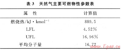 天然氣主要可燃物性參數(shù)見表3。