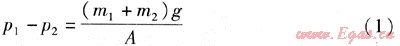 將此裝置安裝在燃?xì)夤艿赖纳嫌危箟翰铋_關(guān)的高壓信號(hào)取壓管及低壓信號(hào)取壓管分別與常閉電磁閥的前取壓管和節(jié)流閥芯的后取壓管相連。壓差管道開關(guān)的開閉信號(hào)輸出給控制電路,再由控制電路控制常閉電磁閥的啟閉,決定是否切斷燃?xì)?,?shí)現(xiàn)保護(hù)。設(shè)定燃?xì)馊肟趬毫閜1,燃?xì)獬隹趬毫閜2,壓差開關(guān)設(shè)定的動(dòng)作壓差分別為△p1和△p2。當(dāng)壓差開關(guān)左右腔壓差上行到p1-p2>△p1時(shí),壓差開關(guān)控制電路導(dǎo)通;當(dāng)壓差開關(guān)左右腔壓差下行到p1-p2<△p2時(shí),壓差開關(guān)控制電路斷開。氣流與節(jié)流閥芯接觸面積為4,節(jié)流閥芯的質(zhì)量為m1,配重塊的質(zhì)量為m2。下面根據(jù)流量大小兩種情況進(jìn)行分析。