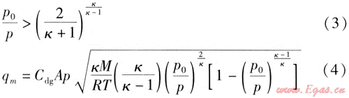 當(dāng)滿足式(3)時,氣體流動屬于亞聲速流動,燃?xì)庑孤┧俾视檬?4)計算[9]。