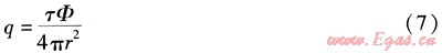 熱輻射通量是距射流軸線距離r處(火災(zāi)危險區(qū)域半徑)的熱輻射強(qiáng)度,它表示距點(diǎn)源一定距離的熱接收量,它與點(diǎn)源輻射量和位置有關(guān)。