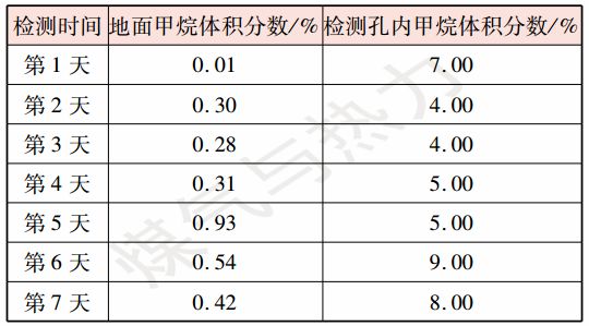表1   E管道地面與孔內(nèi)甲烷體積分?jǐn)?shù)