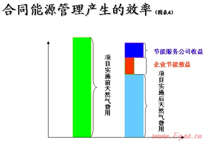 從上述圖示分析,通過節(jié)能服務(wù)公司的運作,一是能促進(jìn)節(jié)能項目的實施,幫助克服由于實施項目的可能風(fēng)險所造成的企業(yè)對實施項目的保留態(tài)度。二是輕輕松實施節(jié)能:幫助克服節(jié)能項目經(jīng)濟(jì)效益不明顯,占用企業(yè)太多精力的擔(dān)心和疑慮。三是減輕節(jié)能項目融資壓力:節(jié)能服務(wù)公司通過同類項目的開發(fā)和大量“復(fù)制”提高項目運做能力,降低項目成本;并且節(jié)能項目的投資來自節(jié)能項目本身產(chǎn)生的節(jié)能效益,減輕了企業(yè)實施節(jié)能項目的融資壓力。
