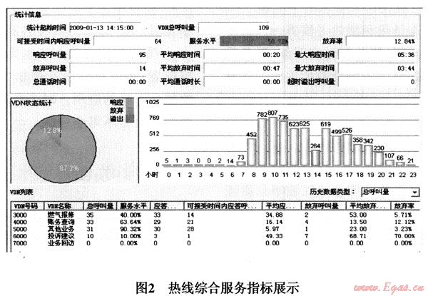 工具2—服務指標管理工具。圖2所示為服務指標管理工具的主要功能之一——熱線綜合服務指標監(jiān)控界面。