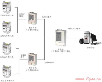 IC卡無(wú)線遠(yuǎn)傳燃?xì)獗淼臄?shù)據(jù)可由無(wú)線方式自動(dòng)上傳給樓宇主機(jī),樓宇主機(jī)通過(guò)無(wú)線方式把數(shù)據(jù)傳給集中器,集中器通過(guò)GPRS/GSM網(wǎng)絡(luò)把數(shù)據(jù)傳給燃?xì)夤镜腎C卡無(wú)線遠(yuǎn)程抄表系統(tǒng)中,由此實(shí)現(xiàn)在管理中心自動(dòng)抄錄所有的燃?xì)獗頂?shù)據(jù)。