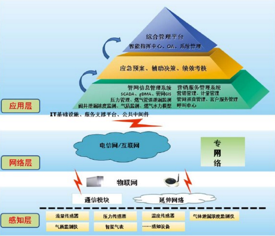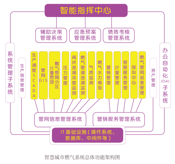 智慧城市燃氣系統(tǒng)是智慧城市建設(shè)城市功能提升的重要組成部分,該系統(tǒng)功能緊密結(jié)合燃氣企業(yè)運營業(yè)務流程,以一體化的管理方式對管網(wǎng)信息、生產(chǎn)調(diào)度、營銷管理、客戶服務等業(yè)務實現(xiàn)功能和數(shù)據(jù)上的統(tǒng)一與共享,有利于提高工作效率和質(zhì)量,為用戶提供優(yōu)質(zhì)服務。系統(tǒng)同時對各運營業(yè)務系統(tǒng)的信息進行深層次的智能分析,為管網(wǎng)規(guī)劃和改造提供科學依據(jù);提高應對突發(fā)事件能力,最大限度地減少突發(fā)事件可能造成的損失,保護人民的健康和生命安全,確保城市供氣安全。