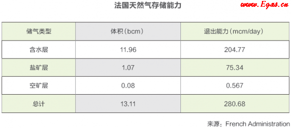 法國目前有兩家企業(yè)經(jīng)營儲存設施業(yè)務,分別是Storengy(Engie的子公司)和Total Infrastructures Gaz France(TIGF)。Storengy公司在法國經(jīng)營13個地下儲氣庫,有10個含水層儲氣庫(以巴黎盆地為中心),3個鹽穴儲氣庫(在法國東南部),其總存儲容量為104億立方米(約占法國存儲容量的80%);TIGF是Total的全資子公司,在法國經(jīng)營2個地下儲氣庫,位于法國西南部的Izaute和Lussagnet的含水層儲氣庫,TIGF的總存儲量為27億立方米(約占法國存儲容量的20%)。