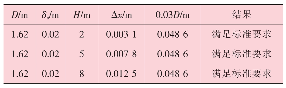 表3 管道徑向穩(wěn)定性計(jì)算結(jié)果