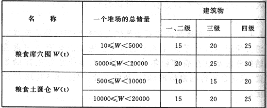 不同性質(zhì)物品堆場之間的防火間距,不應(yīng)小于本表相應(yīng)儲量堆場與四級耐火等級建筑物防火間距的較大值。