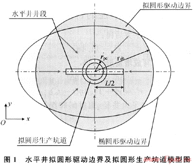 筆者是基于現(xiàn)有油氣井探測半徑公式主要應(yīng)用于直井并存在諸方面的缺陷而提出的。將水平井滲流問題轉(zhuǎn)為擬圓形坑道的虛擬直井滲流問題,從而得出油氣藏水平井探測半徑計(jì)算公式。