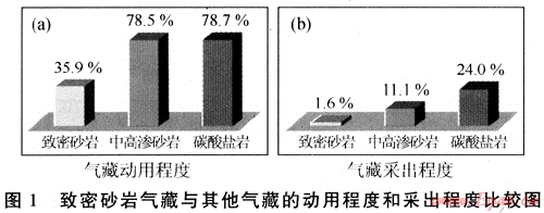 雖然在開發(fā)技術(shù)上取得了成效,但在氣藏的動用程度和采出程度方面,致密砂巖氣藏遠遠低于中高滲透砂巖氣藏和碳酸鹽巖氣藏(見圖1),處于規(guī)模開發(fā)的早期階段。