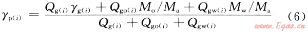 其中采氣階段產(chǎn)出流體相對(duì)密度[γp(i)]為: