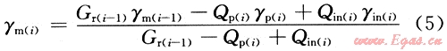 某一注采階段庫內(nèi)混合流體相對(duì)密度[γm(i)]的數(shù)學(xué)表達(dá)式為:
