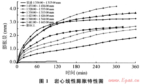 2) 儲層巖石中黏土礦物含量高。黏土礦物中以膨脹性蒙脫石為主,黏土線性膨脹大,水敏性極強(qiáng)。巖石中黏土礦物含量10%~30.0%,其中蒙脫石含量為70%~80%,巖心粉清水線性膨脹量達(dá)到4.0mm,水敏指數(shù)0.71~0.95,水敏性極強(qiáng)(見圖1、表1)。