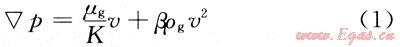 氣體由于易壓縮、易流動(dòng)的特點(diǎn)使得其在低滲透儲(chǔ)層中的流動(dòng)易受到壓力和流速的影響表現(xiàn)出非線性的滲流特征[4]。氣體在高速流動(dòng)時(shí)表示為: