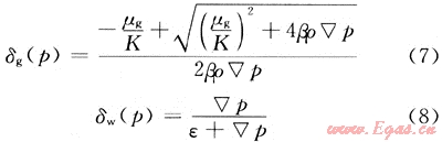 其中氣、水相非線性因子δ的表達(dá)式為: