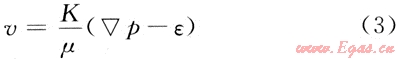 由于界面阻力的作用使得水在低滲透儲(chǔ)層中也不遵循常規(guī)的達(dá)西定律[2]。故提出描述這種非達(dá)西滲流規(guī)律的方程為: