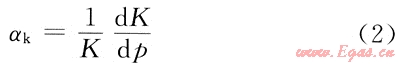 對αk表達(dá)式進(jìn)行分析,可發(fā)現(xiàn)它與巖石壓縮系數(shù)具有相似的形式和物理意義,是基于巖石受力變化后發(fā)生線彈性變形的假設(shè)提出的,其中有兩點局限性:①完全把滲透率當(dāng)成一個幾何參數(shù)來處理,而沒有考慮到滲透率實際上是一個功能參數(shù),不但與巖石的性質(zhì)和結(jié)構(gòu)有關(guān)而且也與滲流過程中的流體密切相關(guān);②對于低滲透巖石來說,假設(shè)為常數(shù)(即變形為線彈性變形)與實驗結(jié)果不相符,采用指數(shù)式來回歸實驗數(shù)據(jù)時,數(shù)據(jù)的相關(guān)性不是很理想。