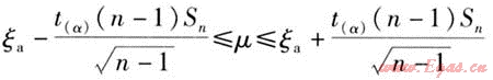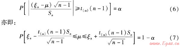 根據(jù)數(shù)理統(tǒng)計定理,取自正態(tài)總體的子樣ζ,其子樣均值ζa、子樣方差Sn2、總體均值μ、總體標準差Sn構(gòu)成統(tǒng)計量A,A是自由度為n-1的t變量,它服從t(n-1)分布。