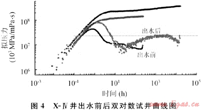 由于啟動壓力梯度的影響,許多井試井解釋出的邊界可能就是這種由于存在著啟動壓力梯度現(xiàn)象而導(dǎo)致的高低滲透層之間的不流動邊界。在實際的開發(fā)中,隨著時間的延續(xù),流動區(qū)域地層壓力的下降,原來未動用的低滲區(qū)域可以得到動用。從試采時間較長的X-Ⅲ井的一年半時間內(nèi)的先后兩次關(guān)井壓力恢復(fù)試井解釋看,存在著流動區(qū)域擴(kuò)大的趨勢,解釋的流動區(qū)域的范圍擴(kuò)大了40m左右。
