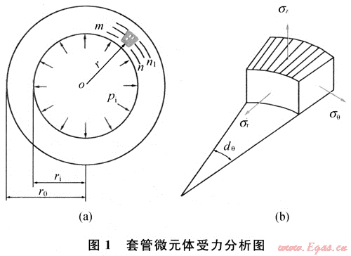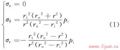 套管在井下情況的受力較為復雜,為了分析方便,主要考慮套管受內(nèi)壓和外擠作用(即管內(nèi)外壓差),而忽略軸向力和溫度對管柱應力的影響時,套管屬于中厚壁管(圖1)。
