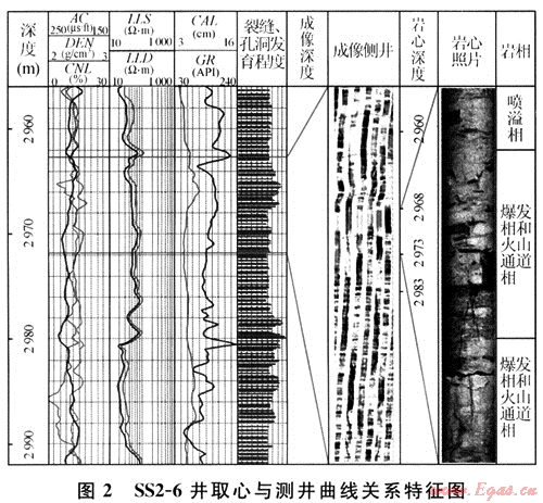 3) 從儲(chǔ)層分類(lèi)方面分析,認(rèn)為I和Ⅱ類(lèi)儲(chǔ)層以氣孔為主,裂縫不發(fā)育;Ⅲ類(lèi)致密儲(chǔ)層段氣孔不發(fā)育,裂縫比較發(fā)育。從火山巖的不同層段分析,認(rèn)為裂縫沿?cái)嗔褞Ц浇l(fā)育,主要發(fā)育層段在營(yíng)三段的上部。