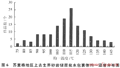蘇里格地區(qū)上古生界儲層成巖作用主要經(jīng)歷了壓實作用,壓溶作用,火山物質(zhì)的水化、脫水、蝕變和溶蝕作用,白生礦物的析出及膠結(jié)作用等。其中壓實及硅質(zhì)膠結(jié)作用是儲層致密化的主要原岡。根據(jù)石英次生加大邊中流體包裹體測溫及其溫度分布頻率,可以認(rèn)為90~140℃是石英膠結(jié)物形成的主要時期(圖6),