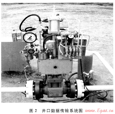 遠(yuǎn)程測(cè)試技術(shù)的核心主要在于兩個(gè)方面:①依靠井口數(shù)據(jù)遠(yuǎn)傳技術(shù),在井口安裝壓力變送器對(duì)套壓進(jìn)行數(shù)據(jù)采集與傳輸;②建立適合蘇里格氣田實(shí)際的壓力折算模型和計(jì)算系統(tǒng),進(jìn)行試井解釋和分析。圖2是已經(jīng)投入使用的井口數(shù)據(jù)傳輸系統(tǒng)。