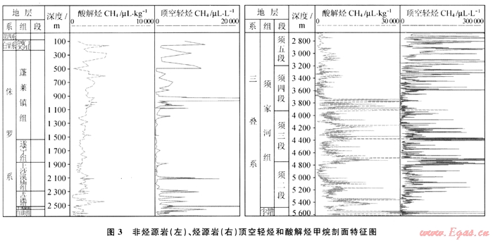 筆者依據(jù)井中化探酸解烴和頂空輕烴不同指標(biāo)特征,以四川盆地某構(gòu)造上X1井為例,探討陸相烴源巖的層位預(yù)測(cè)、類型劃分和成熟度評(píng)價(jià)方法。