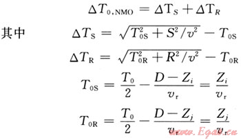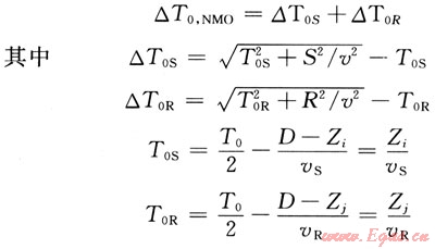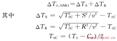 式中△TS和△TR為炮、檢點正常時差;S、R為炮點和檢波點到CMP點水平距離;口為動校正速度;T0C為CMP點的丁T0時間;T0為基準面時間。