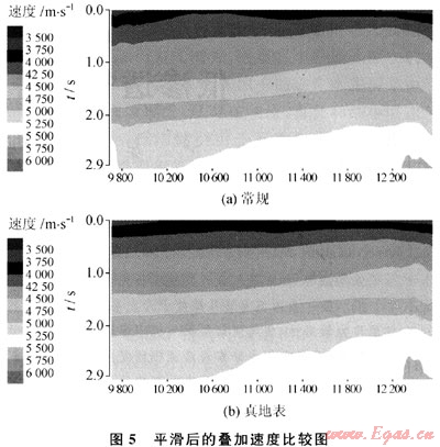 1) 該方案與第2種方法的區(qū)別在于動校正參考點放在了真正的地面,從而使動校正嚴格地遵循了地震波射線的傳播規(guī)律。