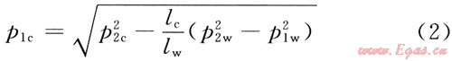 式中p1c為室內(nèi)氣竄試驗中低壓排放壓力,MPa;lw為井眼內(nèi)額定長度水泥漿柱高度,30.48m;p2w為高壓氣層壓力;MPa;p1w為最近氣層第一段30.48m長水泥漿柱上部液柱壓力,MPa;lc為試驗儀器內(nèi)水泥漿柱高度,0.1524m;p2c為注塞壓力,2.8MPa。