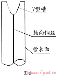 管口毛刺、翻邊清理完成后,為防止碰頭完成后天然氣沿骨架與PE材料之間空隙竄動而損傷管道本體,需對斷口管壁開槽、填料進行封堵,用砂輪機將斷口管壁磨成V形或U形(如圖5),采用與復合管母材相同材質的PE焊條用熱風機同時加熱母材與焊條,當焊條與母材融化發(fā)軟時,將焊條壓入V形槽,注意須先將焊條氧化層打磨掉,封堵應將骨架完全覆蓋。在開槽時會有火花及粒狀或粉狀PE材料飛濺,施工人員應佩帶好防塵護具。