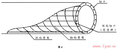 因復合管的特殊制造工藝及結構形式,作為骨架的鋼絲沿管周向和軸向形成螺旋網狀,斷管后,軸向骨架被垂直切斷,螺旋狀骨架有局部區(qū)域被剖切,這樣易形成毛刺,外翻等,因而需用小刀、鉗子、取子等工具將毛刺切斷取出(如圖4)。