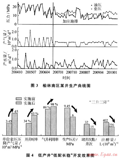 2) 通過對低產(chǎn)氣井?dāng)y液能力及生產(chǎn)規(guī)律研究,優(yōu)化泡沫排水、套管注醇、井下節(jié)流等配套工藝技術(shù)措施,提高了氣井連續(xù)生產(chǎn)能力,進(jìn)一步發(fā)揮氣井產(chǎn)能。