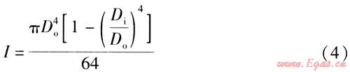 未補(bǔ)強(qiáng)跨越管道截面慣性矩,的計(jì)算式為: