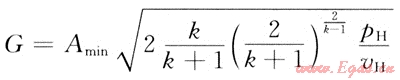 式中:k為絕熱指數(shù),對(duì)于天然氣(按甲烷計(jì))而言,k=1.32;Amin為噴嘴喉部面積,對(duì)于固定的噴嘴其喉部面積保持不變。因而通過(guò)該噴嘴的流量只與入口高壓氣參數(shù)有關(guān),而與低壓氣參數(shù)無(wú)關(guān)。