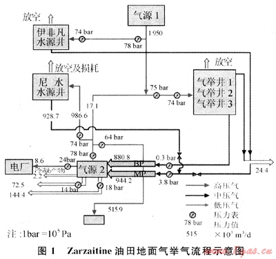 1) 阿爾及利亞Zarzaitine油田氣舉采油工藝技術(shù)先進(jìn)可靠,地面供氣氣源雙套系統(tǒng),保證了該油田長期穩(wěn)定氣舉采油生產(chǎn)。
