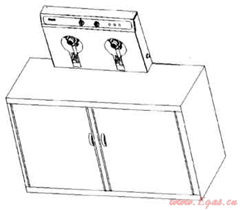 目前,現(xiàn)有技術(shù)家用燃氣灶根據(jù)其安裝方式大致可分為兩種類型,一種為臺式燃氣灶,它是直接平放在櫥柜臺面上;另一種是嵌入式燃氣灶,它在安裝時需要在櫥柜臺面上開一個能夠容納灶具底盤的孔。以上兩種燃氣灶在實際應用中均存在以下二個不足之處:1、無論是臺式燃氣灶還是嵌入式燃氣灶,由于它們均是橫放在櫥柜臺面上或桌面上,因此它們在櫥柜臺面上或桌面上占用的空間比較大;2、用戶在烹飪時,經(jīng)常會使一些湯汁湯水或食物等直接掉在燃氣灶灶面上或灶具內(nèi)部,從而不但造成清洗困難,而且嚴重時還會因為湯汁湯水而損壞燃氣灶灶具內(nèi)部的電路,影響燃氣灶的使用壽命。