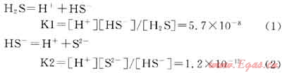 H2S是溶于水的二元酸,在水溶液中,H2S的酸性表現(xiàn)形式體現(xiàn)在下面的兩個電離平衡中[7]: